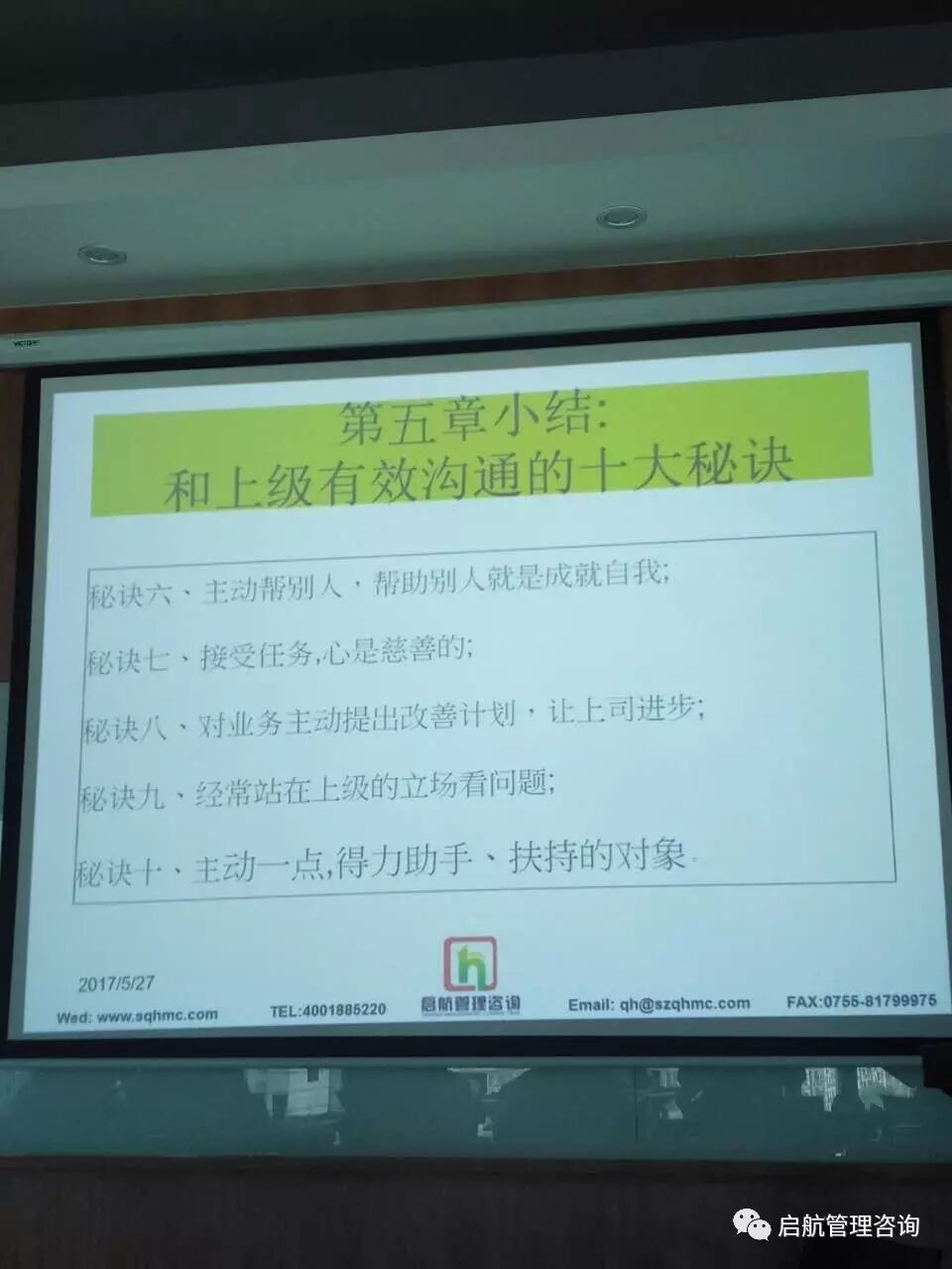 2017年5月26-27日,启航管理咨询2017年5月公开课《跨部门有效沟通与团队协作》在粤商中心B座9E启航管理学院培训室开讲。